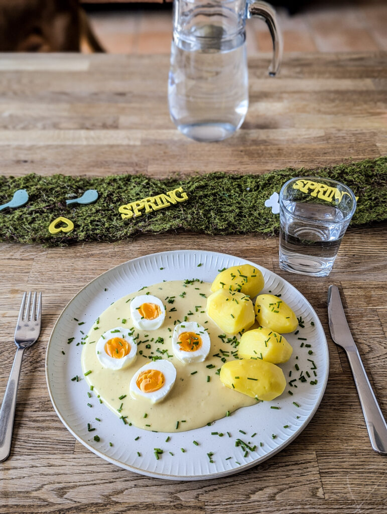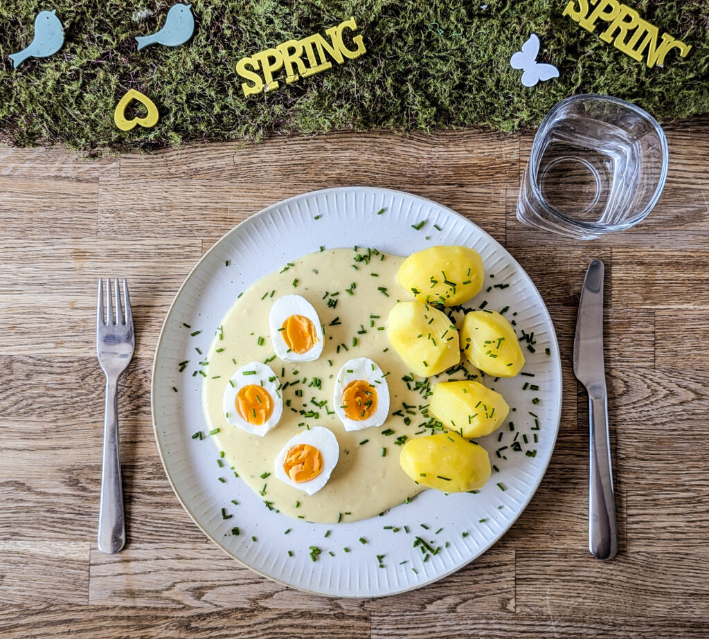 Die Kombination aus gekochten Eiern und einer sämigen Senfsoße ist simpel, aber unglaublich lecker. Das Geheimnis liegt – wie so oft – in der richtigen Zubereitung der Soße.